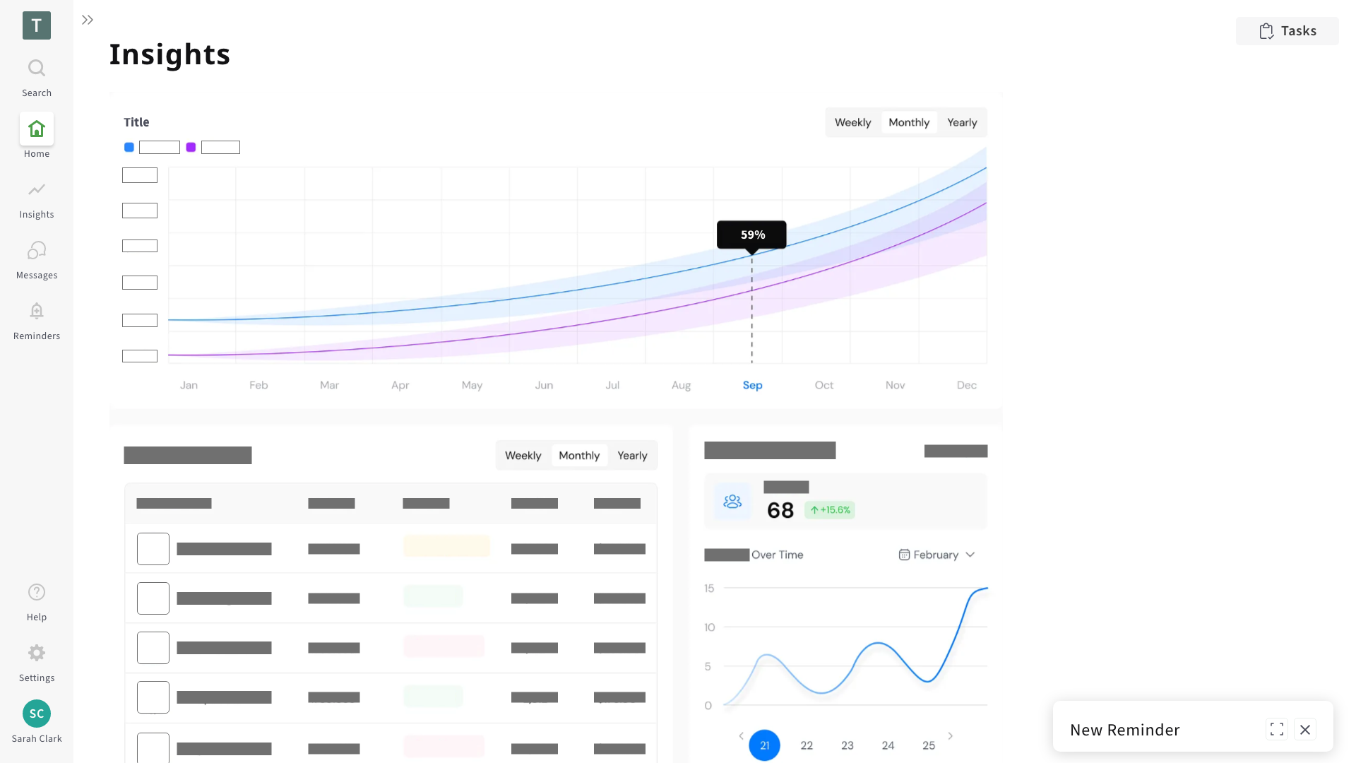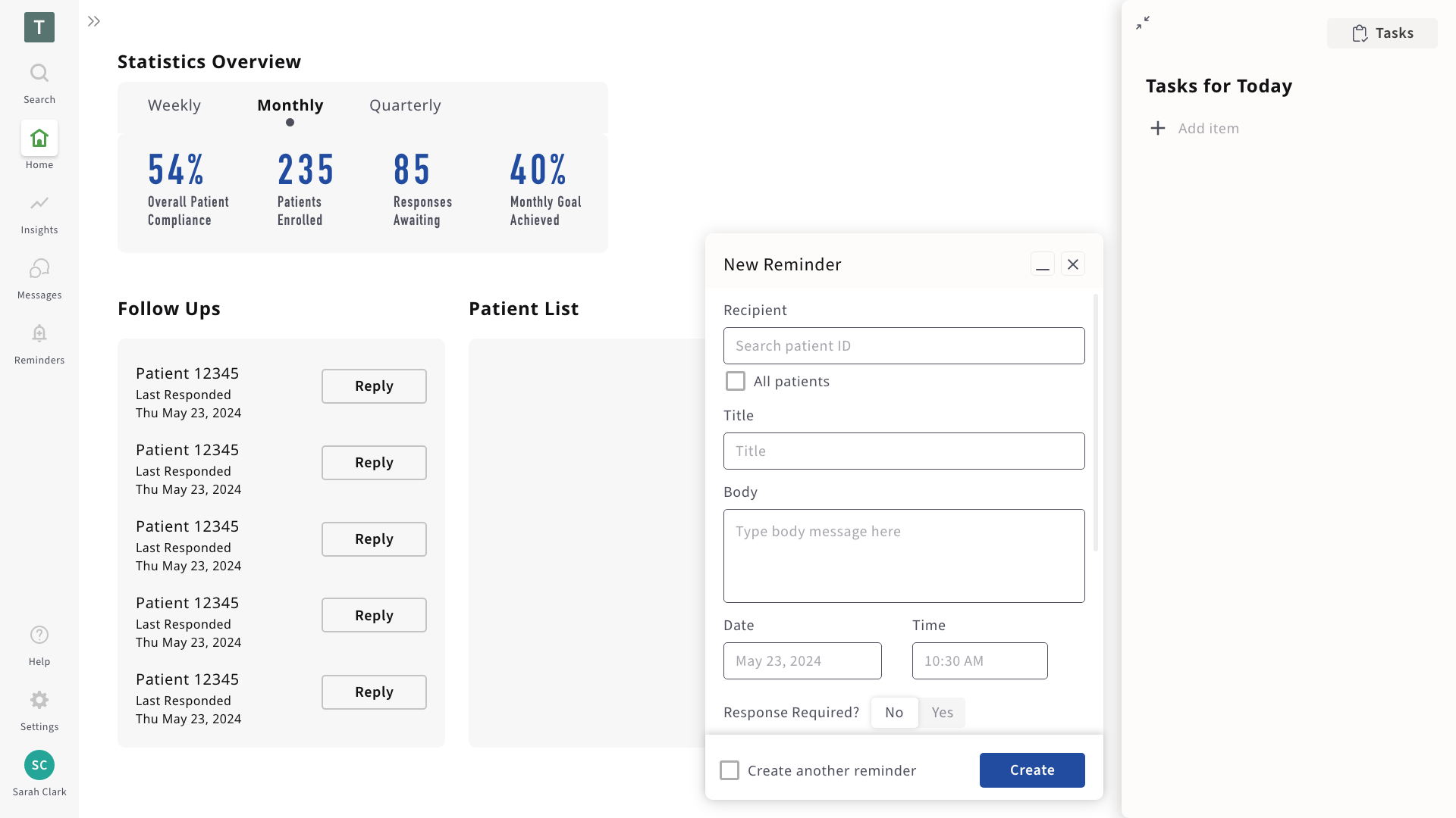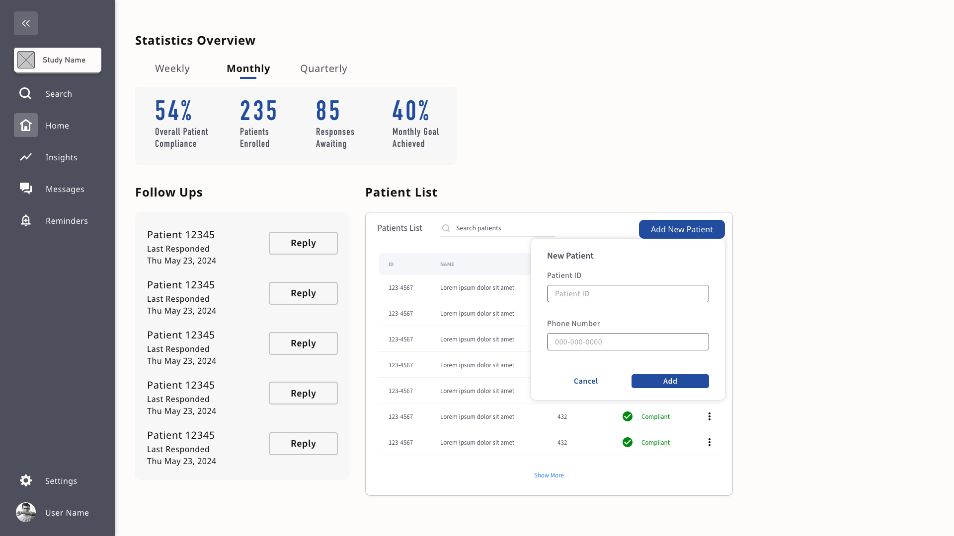 Iteration was the highlight of this project as I conducted extensive research, sketched many ideas, and sought stakeholder feedback to determine the best dashboard format for the clinical research teams. Through this deep analysis of the pros and cons of other dashboard layouts, I narrowed it down to a clean dashboard with all of the necessary features.